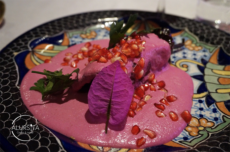 Este platillo, que ya es uno de los clásicos de este restaurante, posee un bello color rosa en su nogada por medio de flores y moras, preparado con chile ancho relleno de un picadillo de carne de cordero, res y frutas de temporada, una delicia para el paladar, que ahora combina hermosamente con el movimiento Barbie.