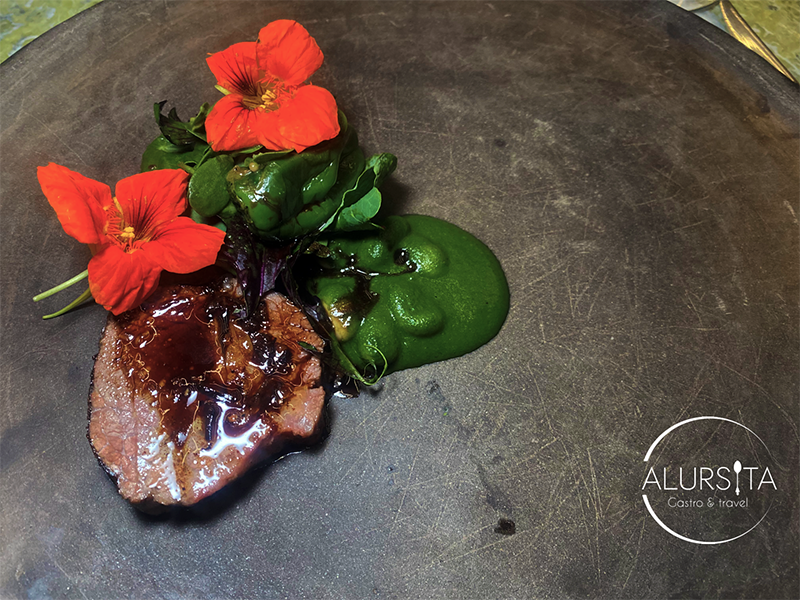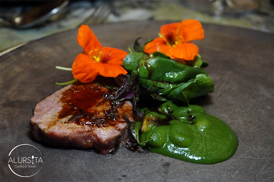 El sexto plato fue una aguja norteña en mole verde de leche bronca, pimiento shishito, alubias, hojas picantes y una reducción de ciruelas con hormiga chicatana.