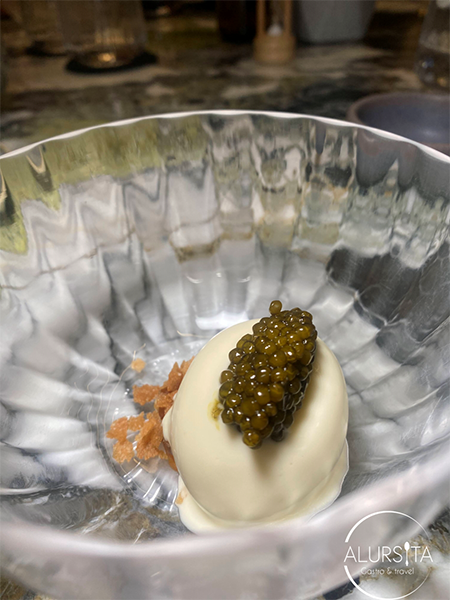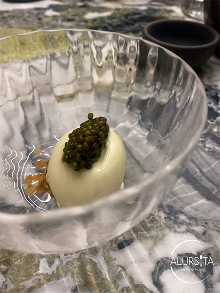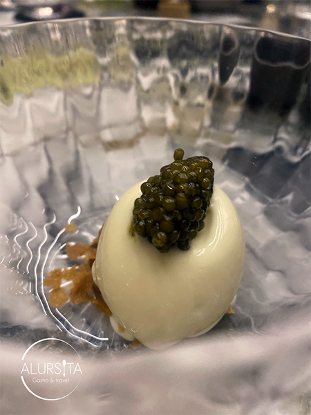Una impresionante Crême fraîche, níspero y caviar que hace que tus sentidos exploten al máximo.