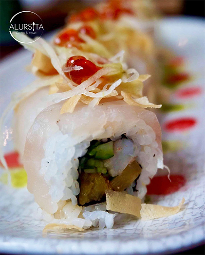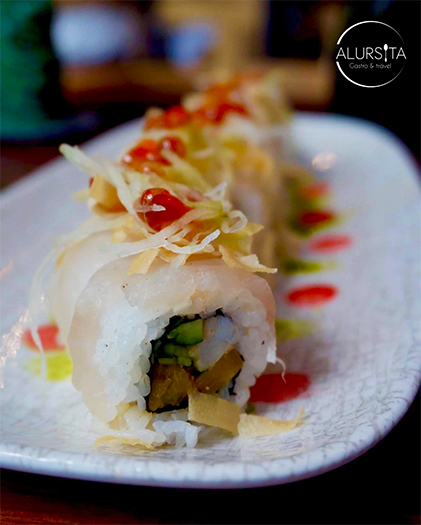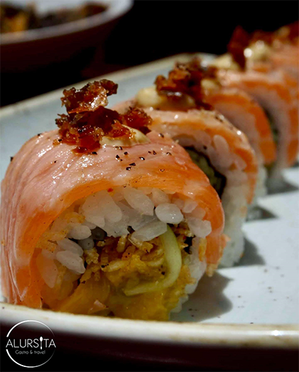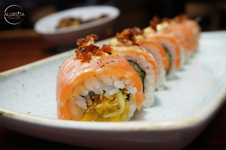 Como segundos tiempos llegaron el Fire Roll, un maki que por dentro trae mango y papa crispy, y por fuera salmón con un toque de red miso y la piel del salmón crujiente como topping.