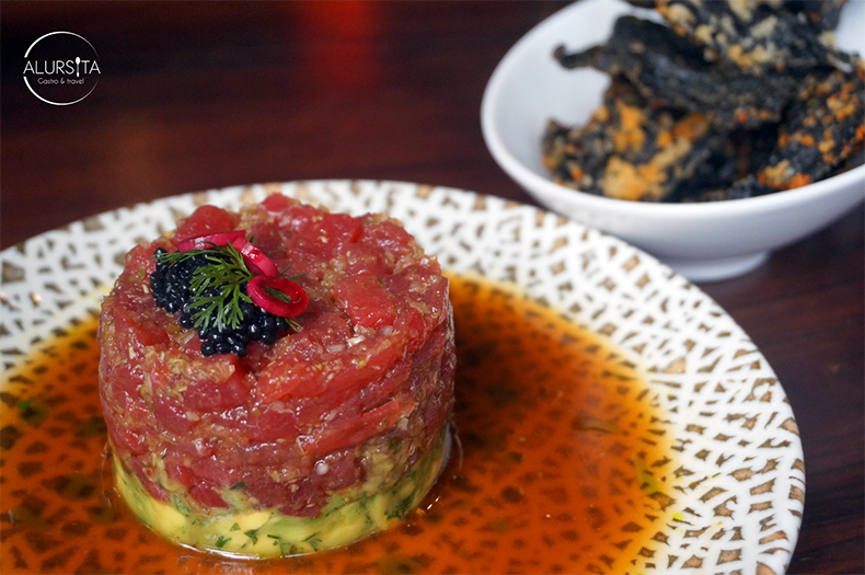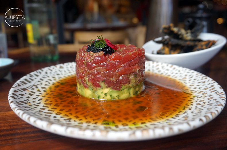 Como primer tiempo disfruté de un Smoked Tuna Tartar, una torre de fresco atún aleta azul, finamente picado con toque de echalote, cebollin, salsa ponzu oroshicon y gengibre en cama de aguacate y cilantro criollo, decorado con un toque de tobiko negro.