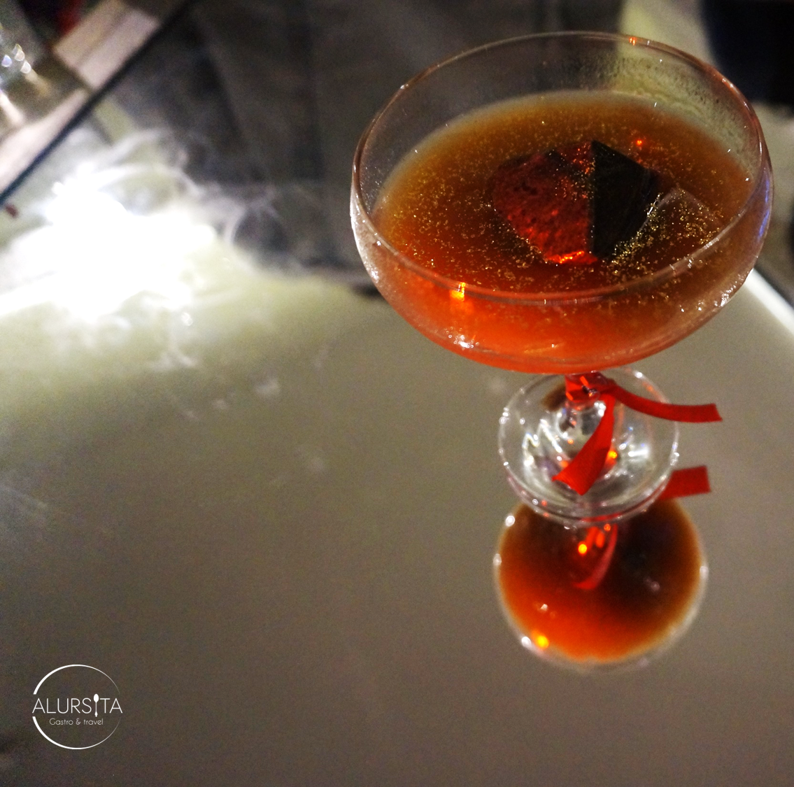 - Coctel de la categoría The Gand Alquimia: En este coctel no se permitía el uso de ingredientes frescos, únicamente destilados, licores, tinturas, bitters y jarabes para lograr tragos elegantes exaltando los sabores del cognac.